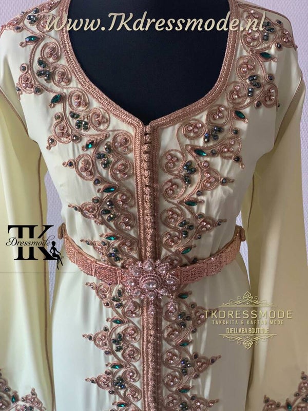 Bij interesse in de Jurk. Geef uw maten dan aan ons door. Wij krijgen dan de Besteloverzicht met uw maten door. Wij nemen binnen 24 uur contact met u op om de bestelling nog een keer goed door te nemen. Levertijd 3/4 weken.