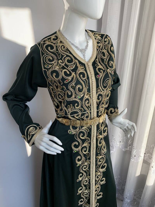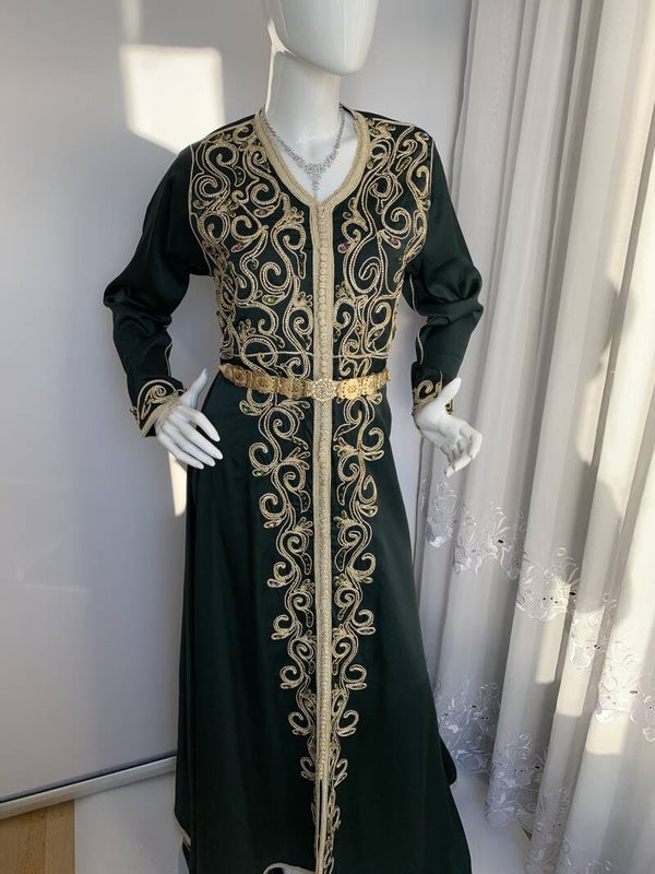 Beschrijving::Mooie groene kaftan, met de beste zardosi, borduurwerk met kralen, pailetten,parels,sfifa en batik touw (satin)