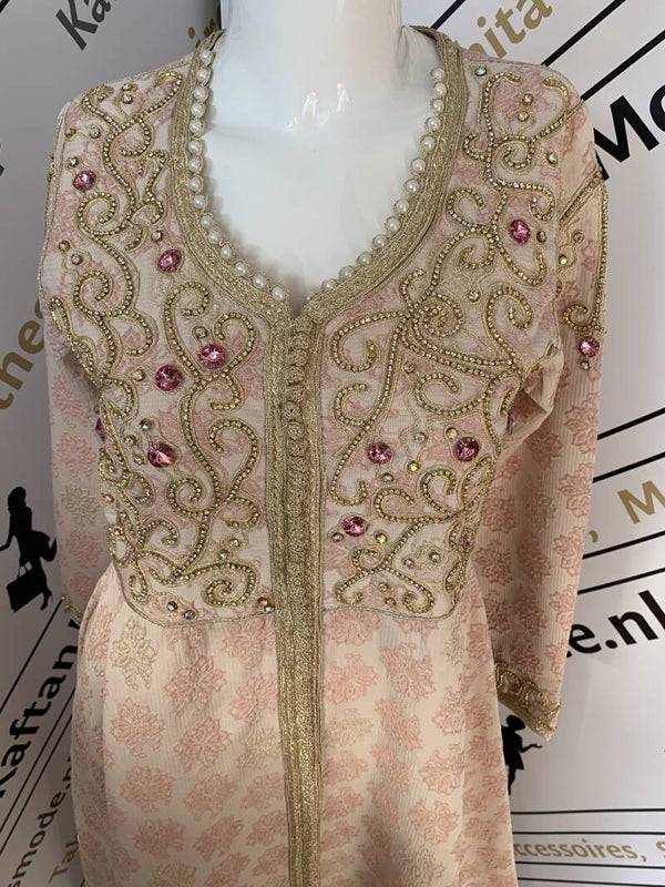 Beschrijving::Mooie roze Kaftan, met de beste zardosi, borduurwerk met kralen, pailetten,parels,sfifa en batik touw