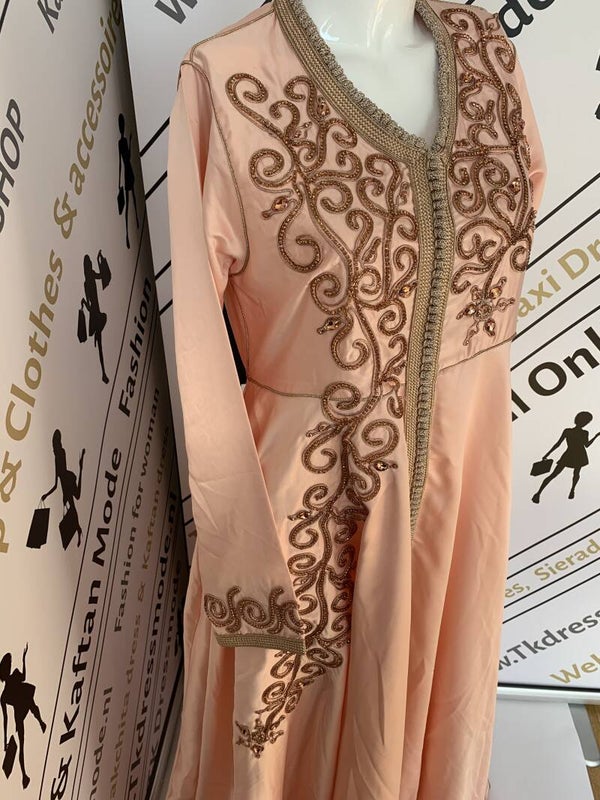 Beschrijving::Mooie licht roze Kaftan, met de beste zardosi, borduurwerk met kralen, pailetten,parels,sfifa en batik touw