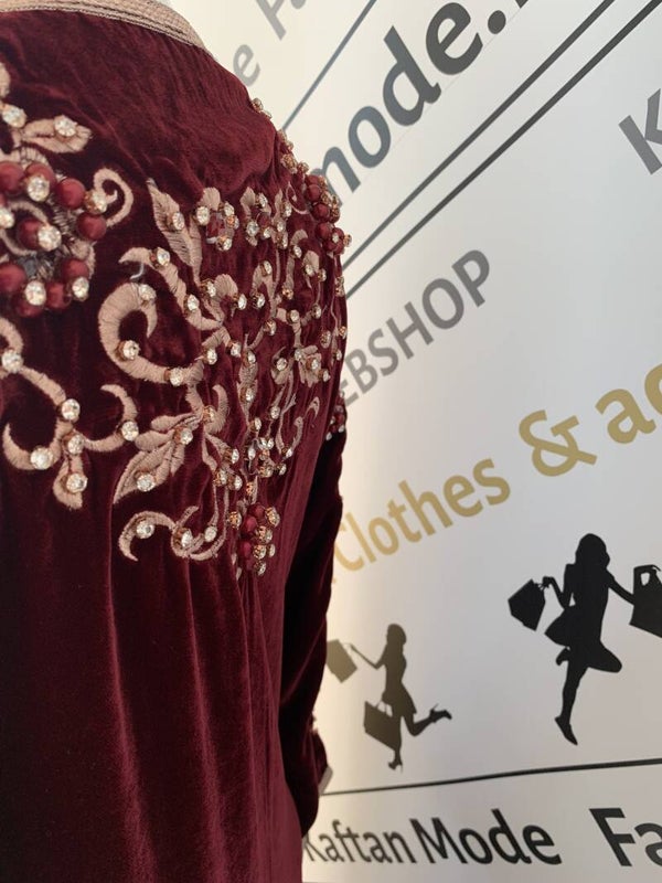 Beschrijving::Mooie bordeaux rood gekleurde Kaftan, met de beste zardosi, borduurwerk met kralen, pailetten,parels,sfifa en batik touw,zeer luxe bewerkte kaftan. super aanbieding. nieuw collectie