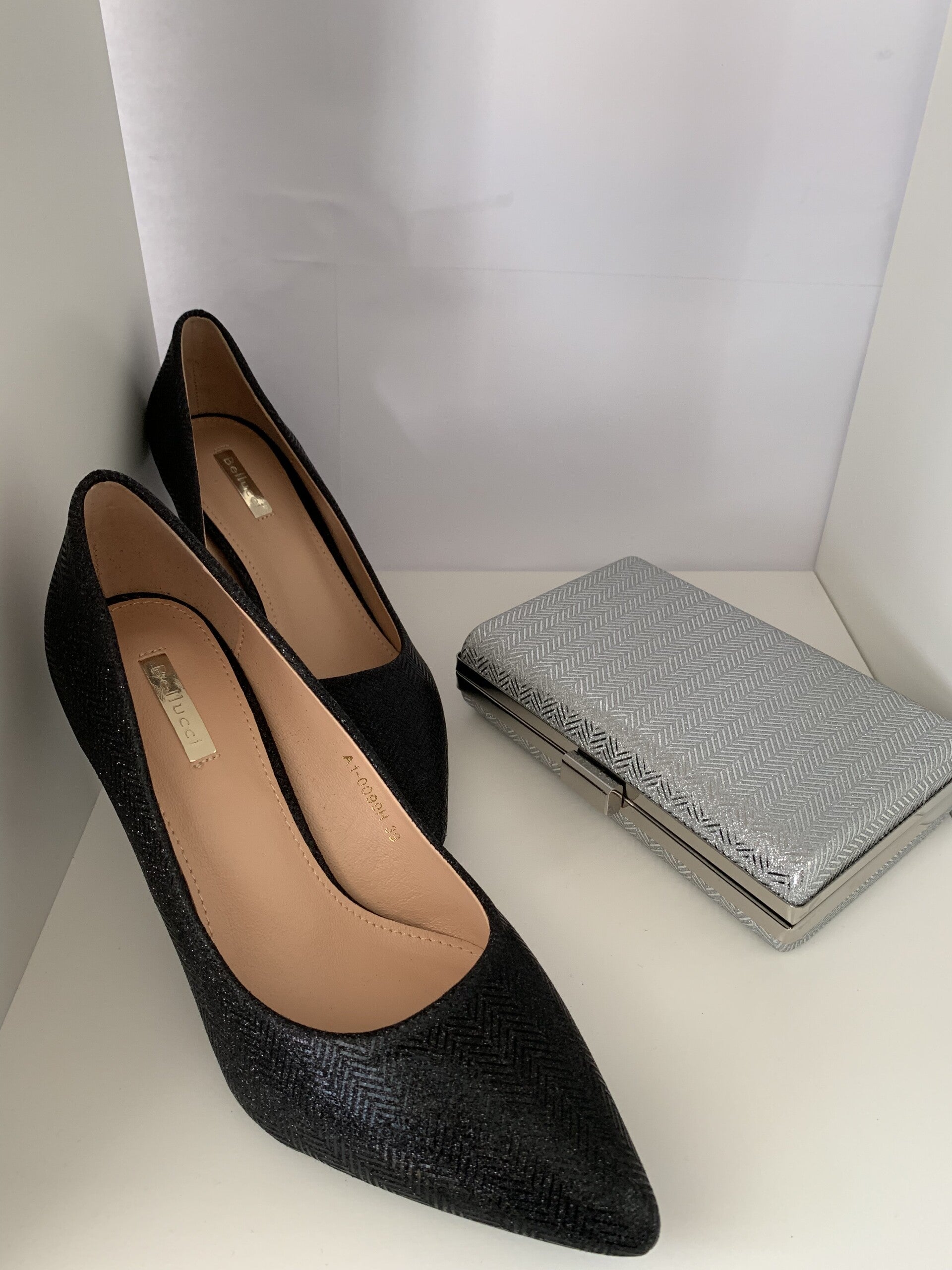 Beschrijving:Super mooie dames fashion Pumps. Super nice ladies fashion Shinny Heels. Van zeer goede kwaliteit; italiaanse ontwerper Bellucci. incl handtas zie afbeelding.